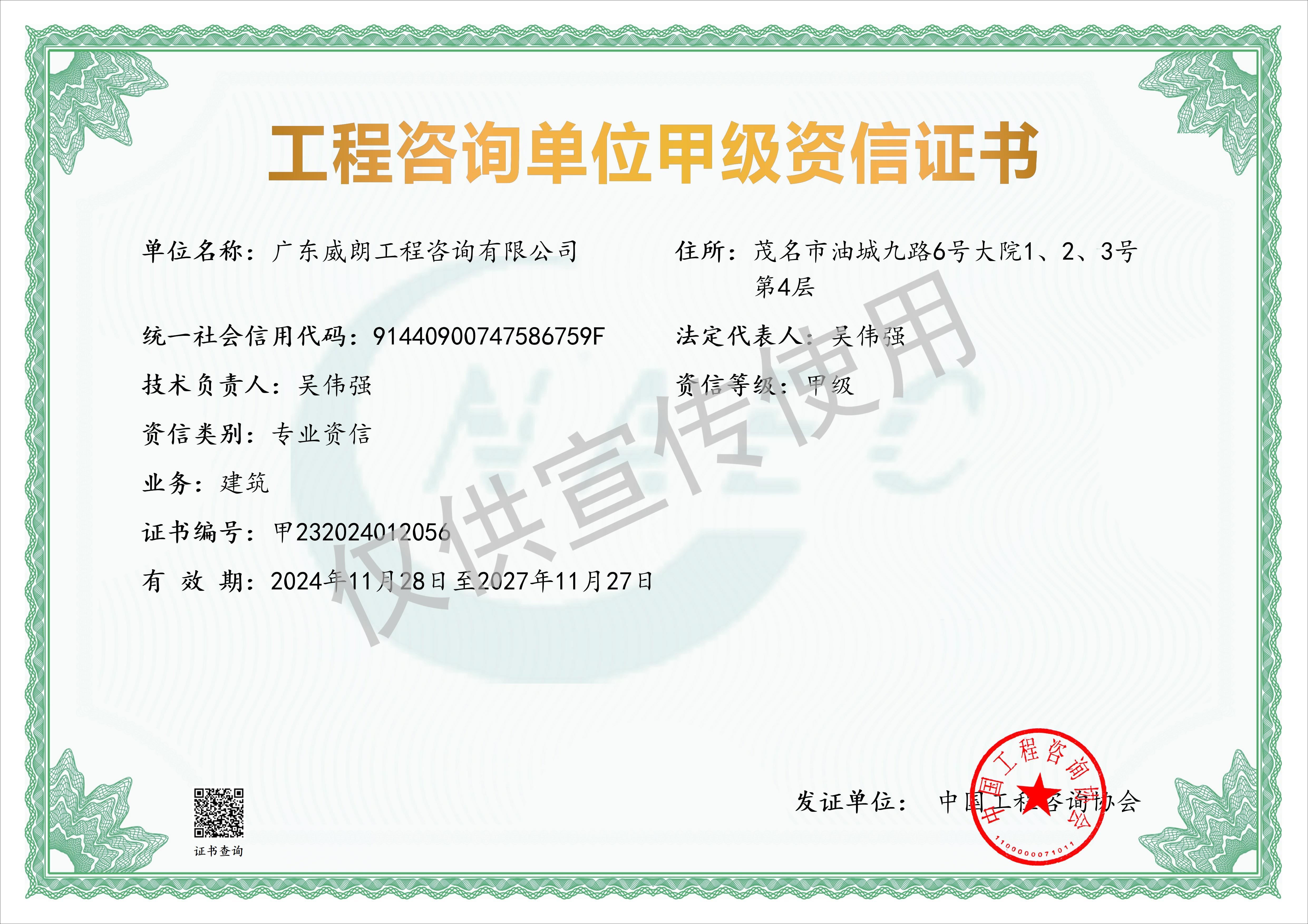 工程咨詢單位甲級(jí)資信證書(建筑專業(yè))